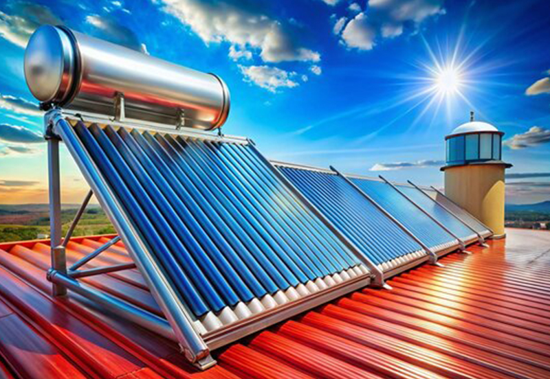 Uses solar energy to directly heat water using solar collectors, perfect for residential and commercial use.